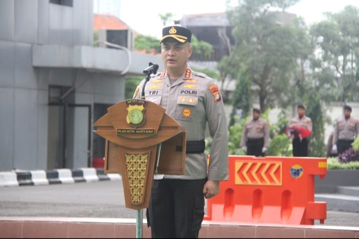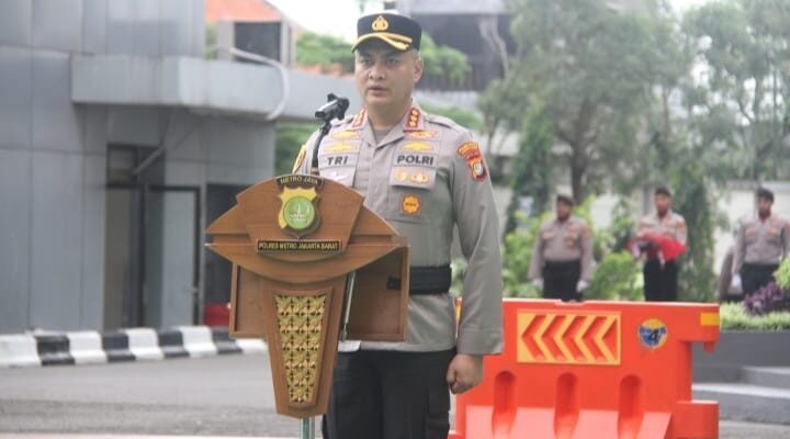 Upacara dipimpin langsung oleh Wakapolres Metro Jakarta Barat, Kombes Pol Dr. Tri Suhartanto, S.H., M.H., M.Si., Ph.D., yang bertindak sebagai Inspektur Upacara.